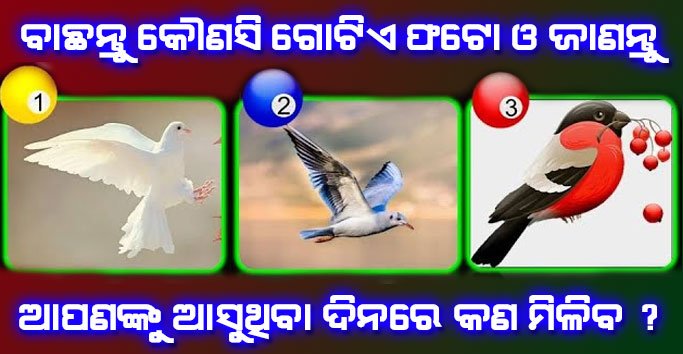 ଯଦି ଆପଣ ବାଛି ଛନ୍ତି ପ୍ରଥମ ଛବି ତେବେ ଆପଣ ଜଣେ ସାନ୍ତ ସାଧାରଣ ବ୍ୟକ୍ତି ଆପଣ ଆପଣଙ୍କ ଜୀବନରେ ଖୁବ ଆଗକୁ ଯିବେ। ଆପଣ ଆଗାମୀ ଦିନରେ ଆପଣଙ୍କ ଲକ୍ଷ୍ୟ ଆଡକୁ ଖୁବ ଉର୍ଣ୍ଣତି କରିବେ । ଆପଣ ନିଜ ପରିଶ୍ରମର ଫଳ ଖୁବ ଜଲ୍ଦି ପାଇବାକୁ ଯାଉଛନ୍ତି । ଆପଣ ନିଜକୁ ସର୍ବଦା ସଫଳ ମଣିଷ ଭାବେ ଦେଖିବାକୁ ଚାହାଁନ୍ତି । ଏହି ଆସା ପୂରଣ ହେବାକୁ ଯାଉଛି ।