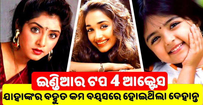 ଦିବ୍ୟା ଭାରତୀ- ବନ୍ଧୁଗଣ ଆମ ଲିଷ୍ଟର ପ୍ରଥମ ସ୍ଥାନରେ ଅଛନ୍ତି ଦିବ୍ୟା ଭାରତୀ । ଦିବ୍ୟା ହେଉଛନ୍ତି ଜଣେ ଏପରି ଅଭିନେତ୍ରୀ ଯିଏ ବହୁତ କମ ସମୟରେ ବହୁତ ଅଧିକ ଲୋକପ୍ରିୟତା ହାସଲ କରିଥିଲେ । ଦିବ୍ୟା ନିଜର ଅଭିନୟ କାରିୟରର ଆରମ୍ଭ ୧୯୯୦ ମସିହାରେ ଏକ ତେଲୁଗୁ ଫିଲ୍ମରୁ କରିଥିଲେ । ଏହାପରେ ସେ ବଲିଉଡ ଫିଲ୍ମ ‘ସୋଲା ଅର ସବନମ ଓ ଦିବାନା ଆଦି ବହୁତ ସୁପର ହିଟ ଫିଲ୍ମରେ ଅଭିନୟ କରିଥିଲେ । ଦିବ୍ୟା ବଲିଉଡରେ ସଫଳତା ହାସଲ କରିଥିଲେ ହେଲେ କେବଳ ୧୯ ବର୍ଷ ବୟସରେ ୧୯୯୩ ମସିହା ଏପ୍ରିଲ ୫ ତାରିଖ ଦିନ ମୁମ୍ବାଇର ତୁଲସୀ ବିଲଡିଙ୍ଗରେ ପଡିଯାଇ ସେ ପ୍ରାଣତ୍ୟାଗ କରିଥିଲେ ।