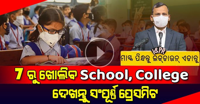 ରାଜ୍ୟ ସରକାରଙ୍କ ମୁଖ୍ୟ ଶାସନ ସଚିବ ଶ୍ରୀଯୁକ୍ତ ସୁରେଶ ଚନ୍ଦ୍ର ମହାପାତ୍ର କିଛି ସମୟ ପୂର୍ବରୁ ସ୍କୁଲ ଖୋଲିବାକୁ ନେଇ ମହତ୍ଵପୂର୍ଣ ଘୋଷଣା କରିଛନ୍ତି । କହିଦେଉଛୁ କି ହାଇକୋର୍ଟର ନିର୍ଦ୍ଦେଶ ଆସିବା ପରେ ରାଜ୍ୟ ସରକାର ସ୍କୁଲ ଖୋଲିବାକୁ ନେଇ ବିଚାର ବିମର୍ଶ କରି ଗୁରୁତ୍ଵପୂର୍ଣ ନିଷ୍ପତି ସବୁ ନେଇଛନ୍ତି । ଶ୍ରୀଯୁକ୍ତ ସୁରେଶ ଚନ୍ଦ୍ର ମହାପାତ୍ର କହିଲେ କି ଦୁଇ ବର୍ଷ ହେବ ରାଜ୍ୟରେ ସ୍କୁଲ ଓ କଲେଜ ବନ୍ଦ ରହିବା କାରଣରୁ ପିଲାମାନଙ୍କ ଶିକ୍ଷାଦାନରେ ବାଧା ଆସିଛି ।