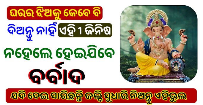 ଯଦି ଆପଣ ଝିଅ ମାନଙ୍କୁ ଗଣେଶଙ୍କ ମୂର୍ତ୍ତି ଓ ମା ଲକ୍ଷ୍ମୀଙ୍କ ମୂର୍ତ୍ତି ଦେଇଥାନ୍ତି ତା ହେଲେ ଝିଅ ଘରେ ପ୍ରଚୁର ଧନର ଆଗମନ ହୋଇଥାଏ । ହେଲେ ବନ୍ଧୁଗଣ ଯଦି ଆପଣ ନିଜ ଝିଅକୁ ଗଣେଶଙ୍କ ମୂର୍ତ୍ତି ଓ ମା ଲକ୍ଷ୍ମୀଙ୍କ ମୂର୍ତ୍ତି ଦେଇଦେବେ ତା ହେଲେ ଆପଣଙ୍କ ଆର୍ଥିକ ପରିସ୍ଥିତି ବହୁତ ଦୁର୍ବଳ ହୋଇଯିବ । କାରଣ ମା ଲକ୍ଷ୍ମୀ ଆପଣଙ୍କ ଘର ଛାଡି ଆପଣ ଝିଅର ଶାଶୁ ଘରକୁ ଆଗମନ କରିବେ । ତେଣୁ ବନ୍ଧୁଗଣ ଏହିପରିକା ଗିଫ୍ଟ ଦେଇ କେବେହେଲେ ଭୁଲ କରନ୍ତୁ ନାହିଁ ।