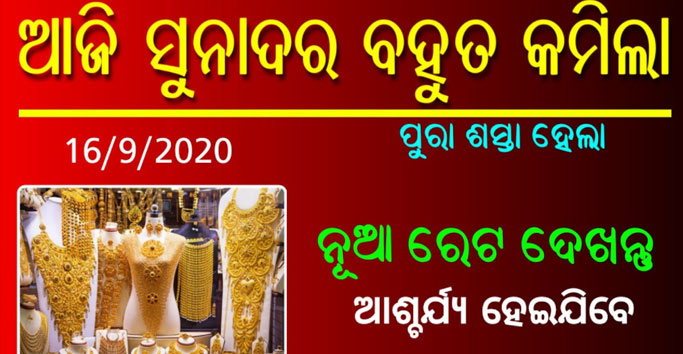 ଆଜି ଆପଣଙ୍କ ପାଇଁ ଅଛି ଖୁସି ଖବର । ଆଜି ମଧ୍ୟ କମିଲା ସୁନାର ମୂଲ୍ୟ । ତେବେ କେତେ ଟଙ୍କା ହ୍ରାସ ପାଇଛି ଓ ନୂଆ ରେଟ କେତେ ରହିଛି, ଉଭୟ ୨୨ କ୍ୟାରେଟ ଓ ୨୪ କ୍ୟାରେଟ ର ଦାମ କଣ ରହିଛି ଆଜି ଆମେ ସବୁ କିଛି ଡିଟେଲ୍ସ ରେ କହିବୁ ।