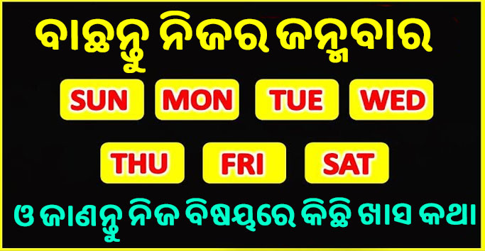 ଜ୍ୟୋତିଷ ଶାସ୍ତ୍ର ଅନୁସାରେ ସବୁ ବ୍ୟକ୍ତିର ଜନ୍ମ ଦିନ ବହୁତ ଖାସ ହୋଇଥାଏ । ବ୍ୟକ୍ତିର ଜନ୍ମ ଦିନ ଆଧାରରେ ତାହାର ସ୍ଵଭାଵ, ଗୁଣ ଓ ଭବିଷ୍ୟତ ଜାଣି ହୋଇଥାଏ  । ସପ୍ତାହର ସାତଦିନଙ୍କର ଗ୍ରହ ଅଲଗା ଅଲଗା ହୋଇଥାଏ । ତେବେ ଆସନ୍ତୁ ଆଜି ଆମେ ଆପଣଙ୍କ ଜନ୍ମ ବାର ହିସାବରେ ଆପଣଙ୍କ ବିଷୟରେ ଜାଣିବା । ଆପଣ ପ୍ରଥମେ ନିଜର ଜନ୍ମ ବାର ଟିକୁ ଭାବି ରଖନ୍ତୁ । ଏହାକୁ ଆପଣ ମାତ୍ର ପାଞ୍ଚ ସେକେଣ୍ଡରେ ଭାବନ୍ତୁ ।