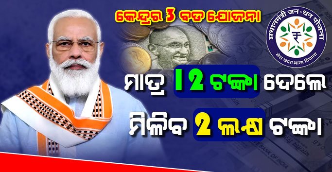 ନମସ୍କାର ବନ୍ଧୁଗଣ,ବାର ଟଙ୍କା ଦେଲେ ମିଳିବ ଦୁଇ ଲକ୍ଷ ଟଂକା । ଉଜ୍ଜ୍ୱଳ ହେବ ଆପଣଙ୍କ ଭବିଷ୍ୟତ । ମାତ୍ର ବାର ଟଙ୍କା ଦେଇ ନିଜର ଭବିଷ୍ୟତ କୁ ସୁରକ୍ଷିତ ରଖନ୍ତୁ । କାରଣ ବାର୍ଷିକ ବାର ଟଙ୍କା ଦେଲେ କେନ୍ଦ୍ର ସରକାର ଦେବେ ଦୁଇ ଲକ୍ଷ ଟଙ୍କା । ମୋଦି ସରକାର ସାଧାରଣ ଜନତା ଙ୍କ ପାଇଁ ଏମିତି ତିନୋଟି ଯୋଜନା କରିଛନ୍ତି ଯାହା ଦ୍ୱାରା ଆପଣ ମାତ୍ର କିଛି ଅଳ୍ପ ଟଙ୍କା ଖର୍ଚ୍ଚ କରି ନିଜ ଭବିଷ୍ୟତ କୁ ସୁରକ୍ଷିତ ରଖି ପାରିବେ । କେନ୍ଦ୍ର ସରକାର ବିଭିନ୍ନ ଶ୍ରେଣୀ ର ଲୋକ ମାନଂକ ସୁରକ୍ଷା କୁ ଦୃଷ୍ଟି ରେ ରଖି ଅନେକ ଗୁଡିଏ ଯୋଜନା କରିଛନ୍ତି ।