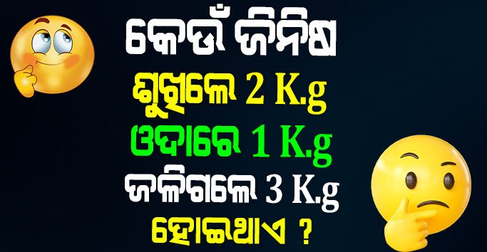GK – କେଉଁ ଜିନିଷ ଶୁଖିଲେ 2 କିଲୋ, ଓଦା ରେ 1 କିଲୋ, ଜଳିଗଲେ 3 କିଲୋ ହୋଇଥାଏ ?