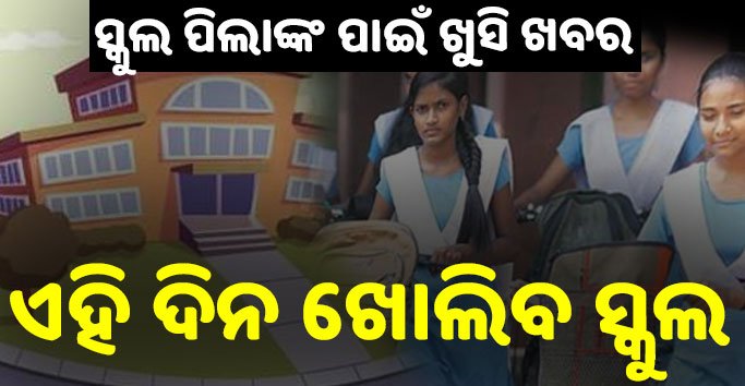 କାରୋନା ଭାଇରସ ସଂକ୍ରମଣ ବାଢୁଥିବାରୁ ମାର୍ଚ୍ଚ ମାସରୁ ସ୍କୁଲ ବନ୍ଦ ଅଛି ଓ ଅନ୍ଲାଇନ ପାଠ ପଢା ଜାରି ଅଛି । ବର୍ତ୍ତମାନ ସ୍କୁଲ ଗୁଡିକୁ ଖୋଲିବା ପାଇଁ ନିଷ୍ପତ୍ତି ନିଆ ଯାଉଛି । ଖବର ଅନୁସାରେ ସେପ୍ଟେମ୍ବର ମାସ ସୁଧା ସ୍କୁଲ ଗୁଡିକ ଖୋଳିପାରେ ହେଲେ ପ୍ରଥମେ ଦଶମ ଓ ଦ୍ଵାଦଶ ପିଲାଙ୍କ ପାଇଁ ସ୍କୁଲ ଖୋଲିବା ଓ ସଂକ୍ରମଣ କମିଳା ପରେ ଅନ୍ୟ ପିଲାମାନେ ସ୍କୁଲ ଯିବେ । କିନ୍ତୁ ବର୍ତ୍ତମାନ ଦଶମ ଓ ଦ୍ଵାଦଶ ପିଲାଙ୍କ କ୍ଳାସ ସପ୍ତାହରେ 2-3 ଦିନ ହେବ । ସୂଚନା ଯୋଗ୍ୟ ଯେ ସେପ୍ଟେମ୍ବର ମାସ ପୂର୍ବରୁ ସ୍କୁଲ ଖୋଲିବାର ଘୋଷଣା କରି ପାରନ୍ତି ସରକାର ।