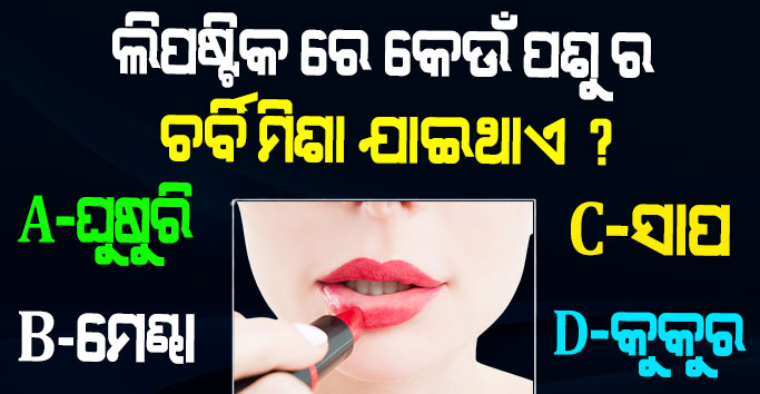21- ଲିପଷ୍ଟିକ ରେ କେଉଁ ପଶୁ ର ଚର୍ବି ମିଶା ଯାଇଥାଏ ?