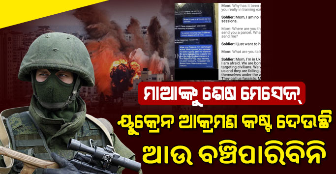 ବନ୍ଧୁଗଣ ଏହି ଖବର ବିଷୟରେ ଜାଣିଲେ ଆପଣ ମାନେ ନିଶ୍ଚୟ ଆଶ୍ଚର୍ଯ୍ୟ ହେବେ ଓ ଆଜି ଆମେ ଆପଣ ମାନଙ୍କୁ ଏହି ଖବର ବିଷୟରେ କହିବାକୁ ଯାଉଛୁ । ତା ହେଲେ ବନ୍ଧୁଗଣ ଆଉ ଡେରି ନକରି ଆସନ୍ତୁ ଜାଣିବା ଏହି ଖବର ବିଷୟରେ । ଋଷିଆର ଜଣେ ସୈନ୍ୟ ନିଜ ମାଙ୍କୁ ଏକ ମେସେଜ୍ କରିଛନ୍ତି । ସେହି ମେସେଜ୍ ରେ ସେ ଲେଖିଛନ୍ତି-‘ମାଆ ମୁଁ ଏବେ ୟୁକ୍ରେନରେ ଅଛି’ ।