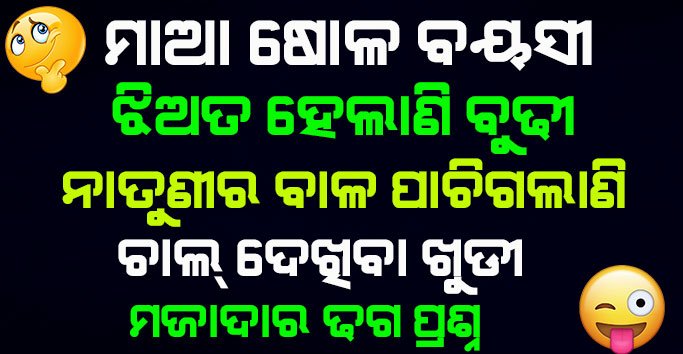 10- ମା ଷୋଳ ବଯସୀ ଝିଅର ହେଲାଣି ବୁଢୀ । ନାତୁଣୀର ବାଳ ପାଚିଲାଣି ଚାଲ ଦେଖିବା ଖୁଡୀ ?