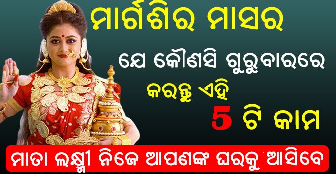 ବନ୍ଧୁଗଣ ମାତା ଲକ୍ଷ୍ମୀ ଧନର ଦେବୀ ଅଟନ୍ତି । ସେଥିପାଇଁ ସମସ୍ତେ ମାତା ଲକ୍ଷ୍ମୀ ଙ୍କର ଆରାଧନା କରିଥାନ୍ତି । ଖାସ କରି ମାର୍ଗଶିର ମାସ ଗୁରୁବାର ମାତା ଲକ୍ଷ୍ମୀଙ୍କର ଅତି ପ୍ରିୟ ଦିନ ହୋଇଥାଏ । ତେଣୁ ଏହି ମାସ ଗୁରୁବାର ଦିନ ମାତା ଲକ୍ଷ୍ମୀ ଙ୍କୁ ପ୍ରସନ୍ନ କରିବା ପାଇଁ ମହିଳାମାନେ ମାତା ଲକ୍ଷ୍ମୀ ଙ୍କର ବ୍ରତ ପାଳନ କରିଥାନ୍ତି । ମାତା ଲକ୍ଷ୍ମୀ ଙ୍କ କୃପା ଯାହା ଉପରେ ରହିଥାଏ ସେହି ବ୍ୟକ୍ତି ଜୀବନରେ କେବେ ବି ଧନର ଅଭାବ ଦେଖାଦିଏ ନାହିଁ । କିନ୍ତୁ ଅନେକ ସମୟରେ ଲୋକମାନେ ମାତା ଲକ୍ଷ୍ମୀ ଙ୍କୁ ପ୍ରସନ୍ନ କରିବା ପାଇଁ ଅନେକ ପ୍ରକାରର ଉପାୟ କରିଥାନ୍ତି । କିନ୍ତୁ ସେମାନେ ସେଥିରେ ସଫଳ ହୋଇ ନଥାନ୍ତି ।