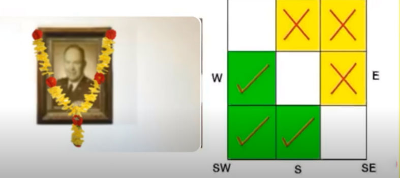 ୨. ବନ୍ଧୁଗଣ ପୂର୍ବ ପୁରୁଷ ମାନଙ୍କ ଫଟୋ ରଖିବାର ସଠିକ ଦିଗ ହେଉଛି ଘରର ଦକ୍ଷିଣ ଦିଗ । ଯଦି ଆପଣ ନିଜ ଘରର ଦକ୍ଷିଣ ଦିଗରେ ଫଟୋ ରଖିପାରୁ ନାହାନ୍ତି ତା ହେଲେ ଆପଣ ଘରର ପଶ୍ଚିମ ଦିଗ ବା ଦକ୍ଷିଣ-ପଶ୍ଚିମ ଦିଗରେ ଫଟୋକୁ ରଖିପାରିବେ । ଏହି ଦିଗରେ ପୂର୍ବ ପୁରୁଷ ମାନଙ୍କ ଫଟୋ ରଖିଲେ ତାଙ୍କର ଆଶୀର୍ବାଦ ସର୍ବଦା ଆମ ମାନଙ୍କ ଉପରେ ରହିଥାଏ ଓ ଆମେ ଆମ ଜୀବନରେ ବହୁତ ଉନ୍ନତି କରିଥାଉ ।